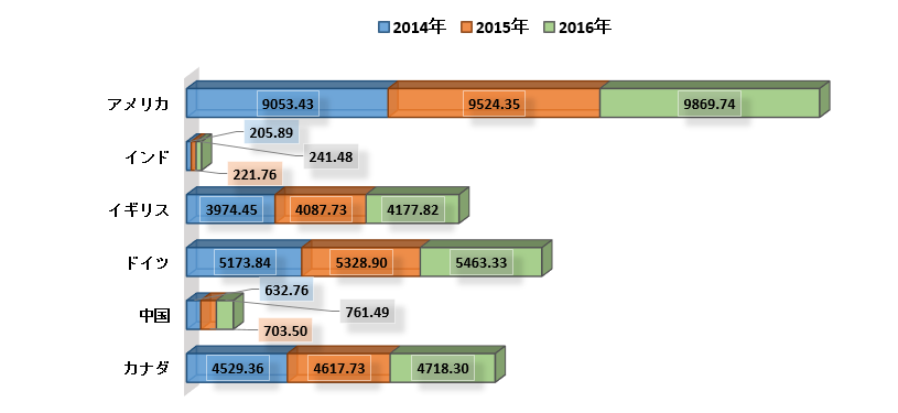 一人当たりの医療費、PPP(米ドル)– 2014-2016年