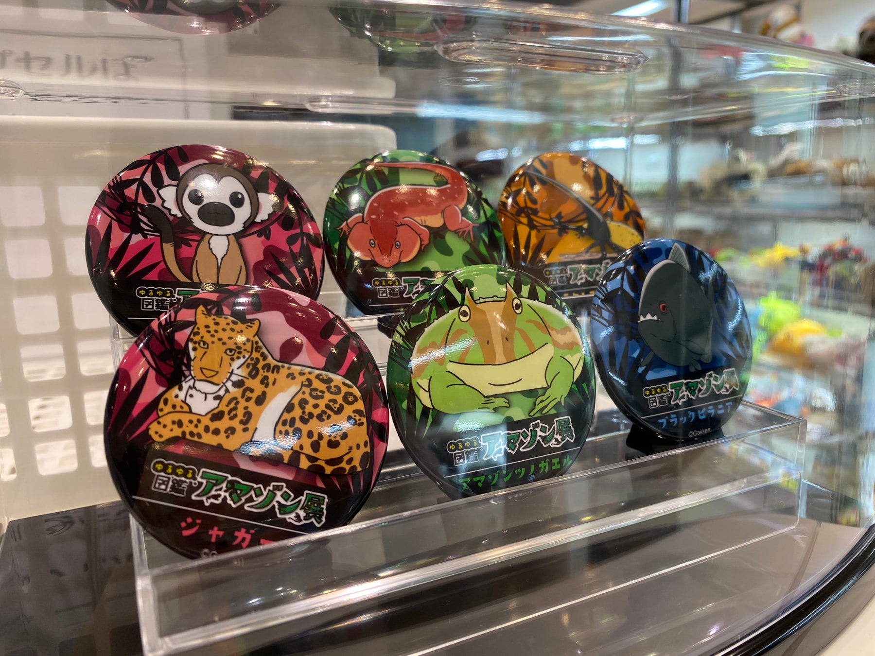 グッズコーナーでは、『ゆるゆるアマゾン図鑑』に登場する生き物たちの可愛らしいイラストを使用したフレークシールやアクリルスタンド、トートバッグ、Tシャツなどのオリジナルグッズに加え、「ゆるゆる図鑑」をはじめとした書籍、アマゾンに関連したさまざまな商品など、盛りだくさんでご用意しております。