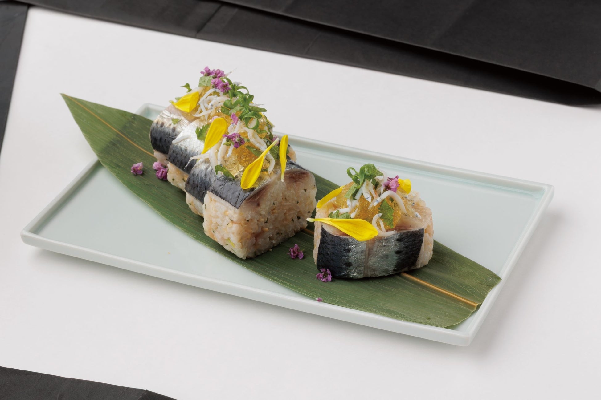 〈土佐しらす食堂 二万匹〉鰯としらすの親子鮨(梨のガリ添え) 1本 1,620円/生鮮プロモーション
