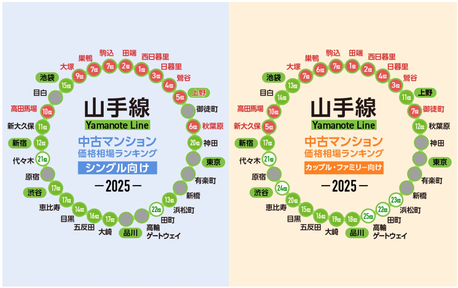 「JR山手線」中古マンションの価格相場が安い駅ランキング2025年版 シングル向け1位は「西日暮里」、カップル・ファミリー向け1位は「田端」