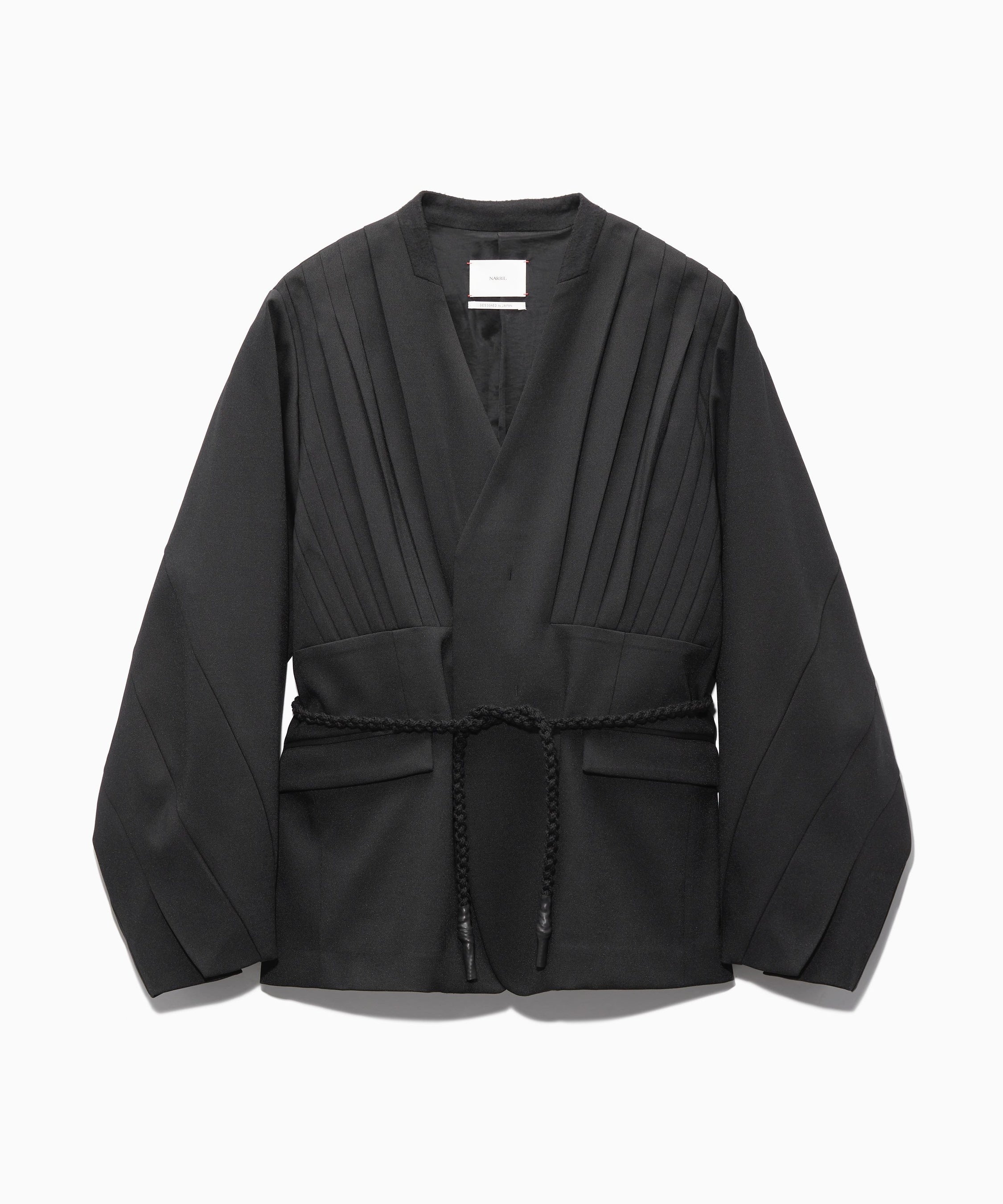 1stコレクションは染色から織りまでを岡山で一貫して行う日本最高峰のデニムファブリックといわれるKUROKIデニムを用いたセットアップや、柔道着の平面的なつくりを折り紙のように折り込み再解釈したノーカラーのテーラードジャケットや和の象徴ともいえる袴パンツをモチーフにしたトラウザーなどを販売します。