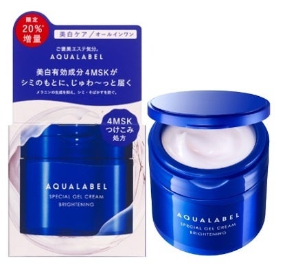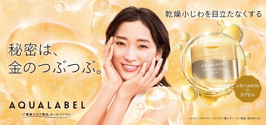 アクアレーベルのオールインワンは、美肌に導く「浸透美容アミノ酸※3」に加え、肌悩みに対応したこだわりの美容成分を配合しています。スペシャルジェルクリーム EX (オイルイン)は、「レチノールオイル※4 inカプセル」を配合。カプセルが肌ではじけて、凝縮された濃密なレチノールオイルがじゅわ~っと浸透※8。乾燥小じわの目立たないもちっとハリつやあふれる肌へ導く、エイジングケア※5 のためのオールインワンです。スペシャルジェルクリーム EX (ブライトニング)は、「美白※6 有効成分4MSK※7 つけこみ処方」を採用。うるっと白玉のような透明美肌へ導く、美白ケアのためのオールインワンです。今回発売する数量限定品は、たっぷり使ってご褒美エステ気分を体験できる20%※2 増量タイプです。