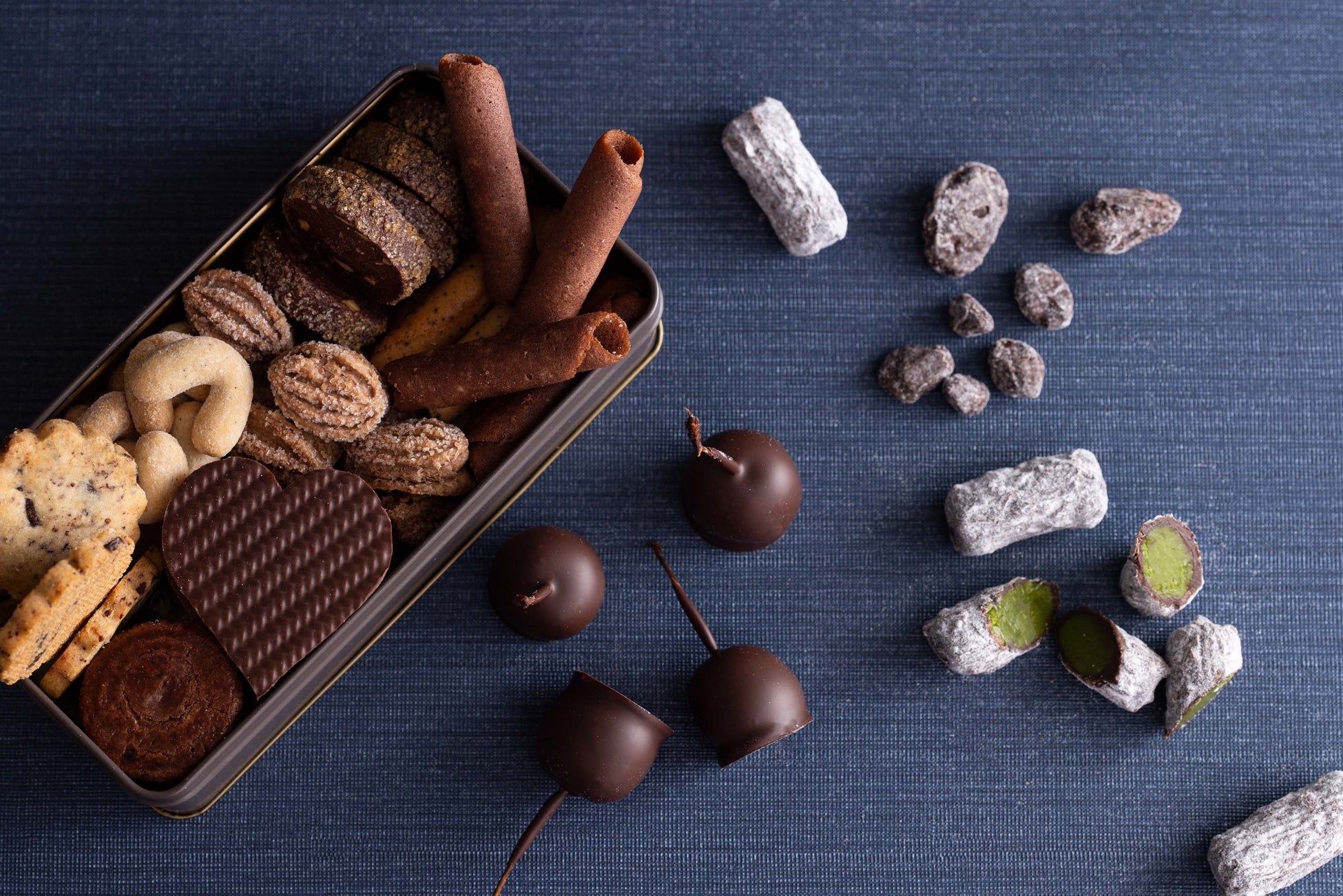 2種類の味を楽しめる「マスカットレーズンショコラ&抹茶ミュスカディーヌ」は、シンプルなデザインの中に果実の香りと抹茶の美味しさを詰め込んだチョコレートです。ブランデー漬けにしたチェリーとビターチョコレートを組み合わせた「チェリーボンボン」は、新鮮でジューシーなフルーツ本来の味わいが楽しめる逸品。アルコールとの相性もよく大人の味わいに仕上っています。「バレンタイン クッキーアソート」はカカオをふんだんに使用し、異なる食感の7種類のクッキーをお楽しみいただけます。創業以来親しまれているバナナブレッドも、バレンタインだけのチョコレート仕様に。シェフが腕によりをかけたこの時季だけのスイーツをご堪能ください。