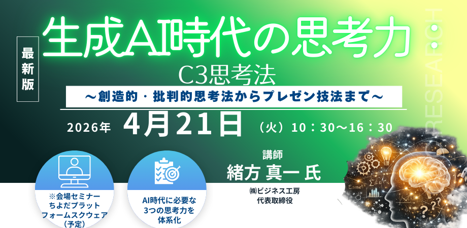 【セミナーご案内】生成AI時代の思考力:C3思考法 ~創造的・批判的思考法からプレゼン技法まで~ 4月21日(火)開催 主催:(株)シーエムシー・リサーチ