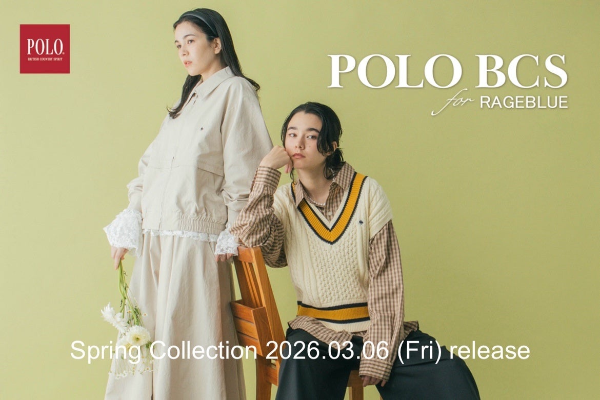“Play fashion!”をミッションに掲げるアンドエスティHDグループで、40 以上のマルチブランドを展開する株式会社アダストリア(本部:東京都渋谷区渋谷 2-21-1、代表取締役社長:北村 嘉輝)の「RAGEBLUE(レイジブルー)」は、英国トラッドをベースにした日本生まれのブランド「POLO BCS(ポロ・ビーシーエス)」とのコラボレーションアイテム全8型を2026 年3月 6 日(金)より 「RAGEBLUE」の店舗と、公式WEBストア and ST(アンドエスティ)、ZOZOTOWNにて発売いたします。新宿のルミネエスト店と札幌のステラプレイス店限定で、今季トレンドのソルベカラーを落とし込んだスウェット2型も登場します。