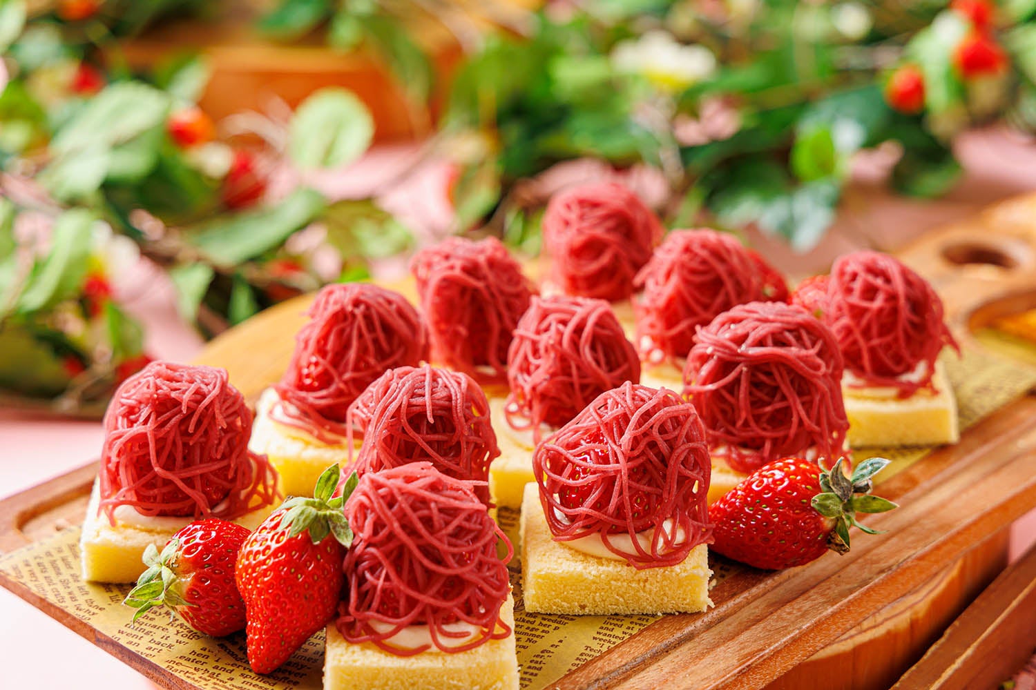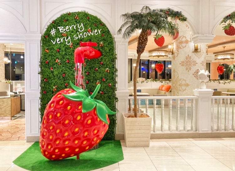 また期間中、ブッフェダイニング「アーカラ」の入口や店内に、可愛らしいいちごのフォトスポットが登場。ご来店の記念にご活用ください。いちごに囲まれた心おどるひとときをお過ごしください。