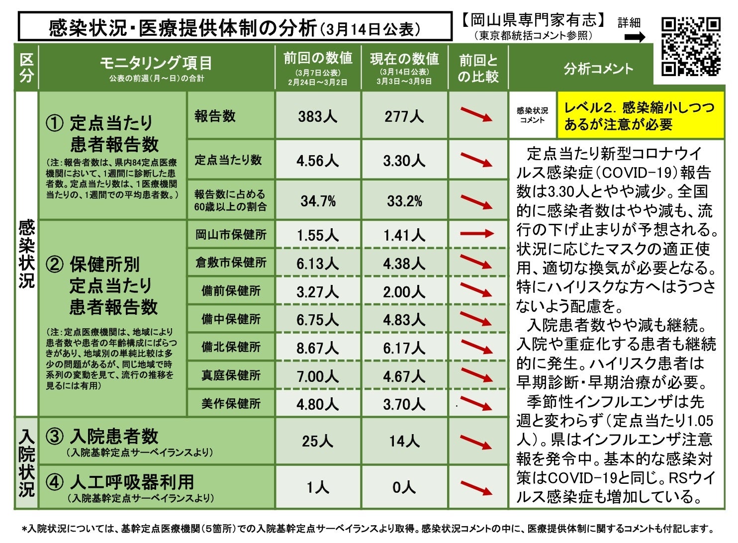 【岡山大学】岡山県内の感染状況・医療提供体制の分析について(2025年3月14日現在)