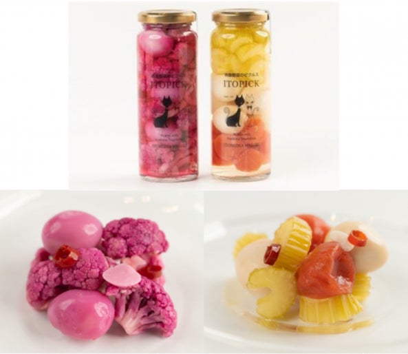 ぷるっとしたうずら卵と紫カリフラワーのシャキシャキ食感が絶妙な「うずら卵とカリフラワーのピクルス」と、食感豊かなうずら卵・爽やかなトマト・シャキシャキとしたセロリが一緒になった彩り豊かな「うずら卵とトマトセロリのピクルス」。