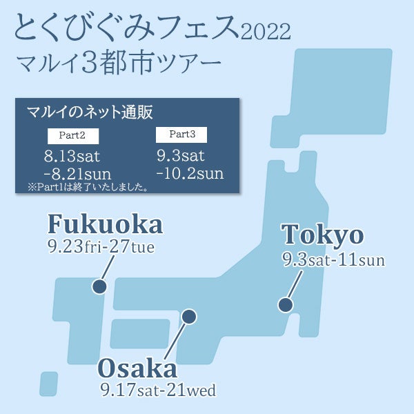 株式会社丸井(本社:東京都中野区、代表取締役社長:青野 真博)は、「とくびぐみフェス2022」を開催いたします。「マルイノアニメ×徳川美術館」でのコミックマーケット100への共同出展と、マルイのネット通販「マルイウェブチャネル」にて、期間限定で「とくびぐみ」オリジナルグッズの販売を行います。