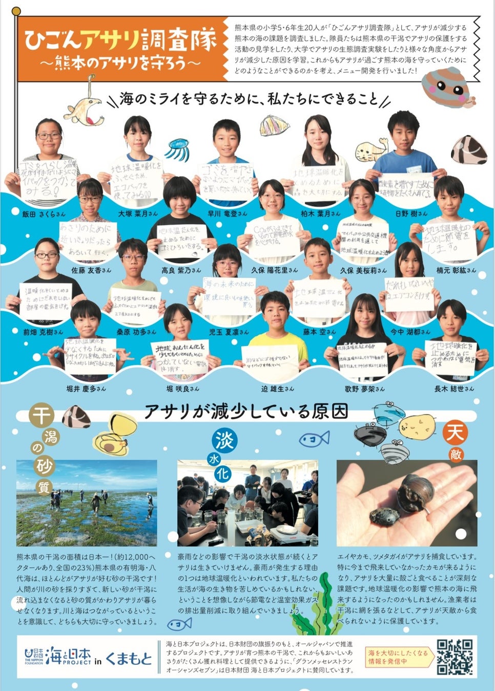 小学生の開発メッセージ:熊本の栄養たっぷり・広い干潟で育ったアサリはおいしいよ!