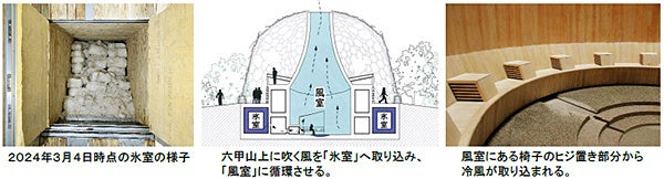 また、「自然体感展望台 六甲枝垂れ(建築家:三分一博志)」では、冬に氷を貯蔵した「氷室(ひむろ)」の扉を開放して六甲山上に吹く風を取り入れる「氷室開き」を7月13日(土)に実施する予定で、氷室の氷が無くなるまで展望台内部の「風室(ふうしつ)」にて自然の力だけで神戸市街地と比べてマイナス約10度の涼が楽しめる「冷風体験」を開催します。
