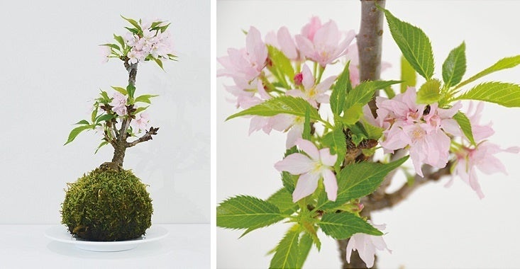 開花時期を調整した桜を、苔玉仕立てにしました。もふもふした愛らしい苔玉と春の桜の組み合わせは、鉢植えや地植えとは異なる魅力があります。見た目は難しそうですが、新鮮な水を絶やさなければ苔玉は枯れることなく、長い間愛でることができます。
