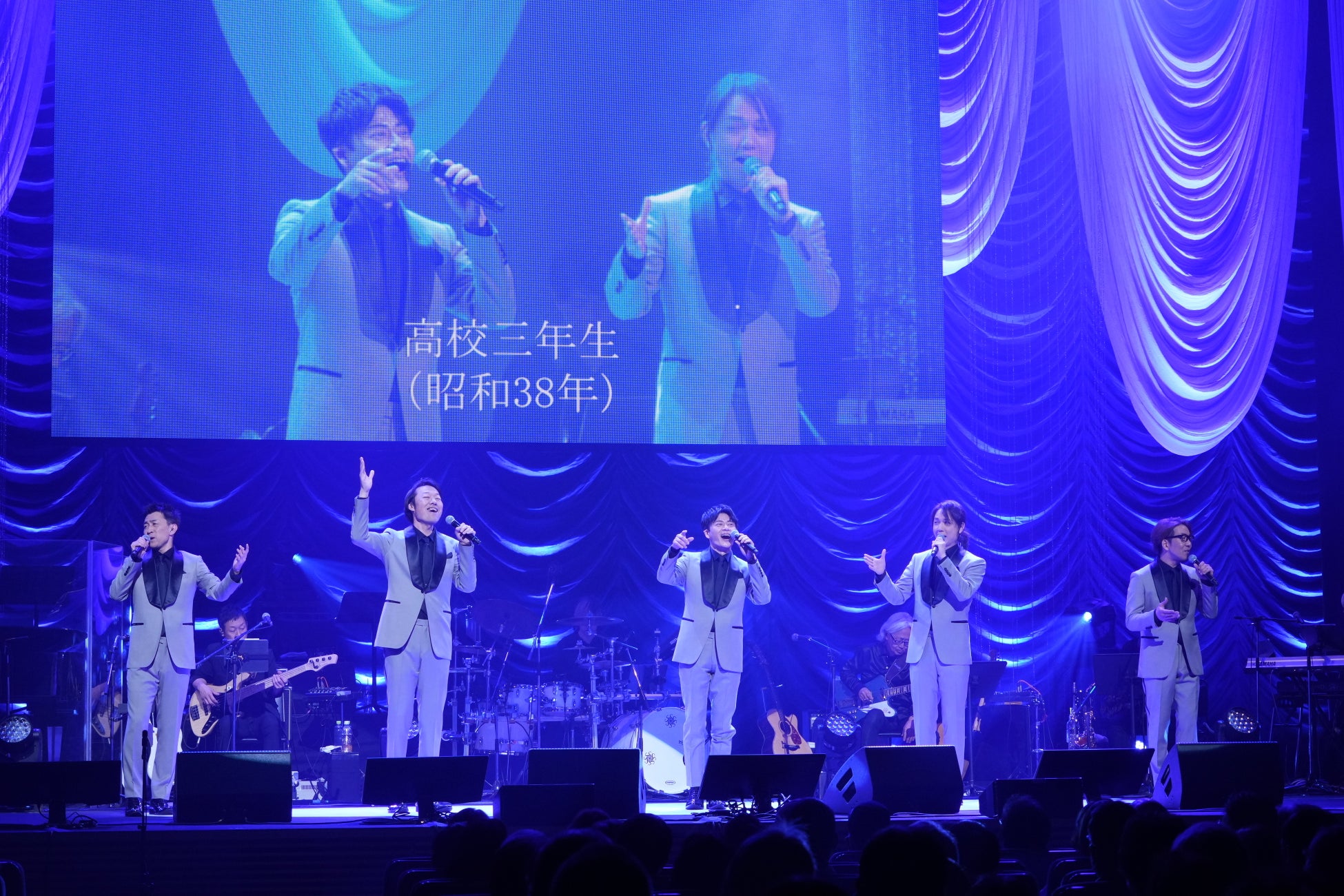 続いて登場したのは多くのヒット曲を生み続けている五木ひろし。ブレイクするきっかけとなった「よこはま・たそがれ」、「日本レコード大賞」を受賞した「夜空」を歌い、「デビューは早かったんですがなかなかヒット曲に恵まれず」と初期の頃を振り返りつつ、「「よこはま・たそがれ」に出会い、そこから出遅れた分、とにかく取り返そうとしてきました。必死に歩いてきて60周年を迎えました」と60周年を迎えたことを報告すると会場から大きな拍手が起こった。