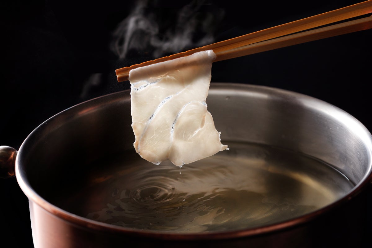 寒い季節にふさわしい贅沢な一品、「九絵のしゃぶしゃぶ」。希少で高級魚とされる九絵は、脂がのった、ぷりぷりの白身が特徴。火を通すことで旨味がさらに引き立ち、口の中でとろけるような食感と、ぎゅっと凝縮された濃厚な旨味をお愉しみいただけます。
