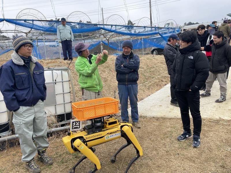 実験では、栗原教授とその研究室の学生が「Spot」による農場の地形マッピングを実施し、「Spot」が農場の環境を把握し、音声認識を活用して記憶したトラックまで自動で収穫用の籠を運搬する一連の流れをデモンストレーションしました。