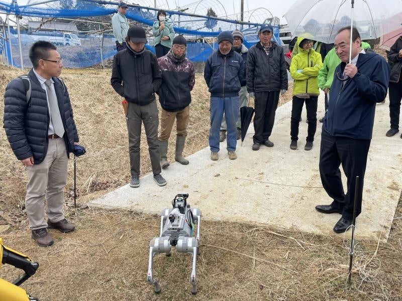 国立大学法人岡山大学(本部:岡山市北区、学長:那須保友)は2025年2月28日、岡山県久米郡久米南町のブドウ農場において、四足歩行(犬型)ロボットを活用した実証実験と就農者の方との意見交換を実施しました。この実証実験と意見交換は、内閣府「地域中核大学イノベーション創出環境強化事業」の一環として、林靖彦副理事(共創の場担当)をプロジェクトリーダーとする中山間地域活性化プロジェクトが実施したもので、前日に岡山大学農場で実施された犬型ロボットの実証実験に引き続き、実際の農業現場での活用可能性を検討することを目的に行われました。