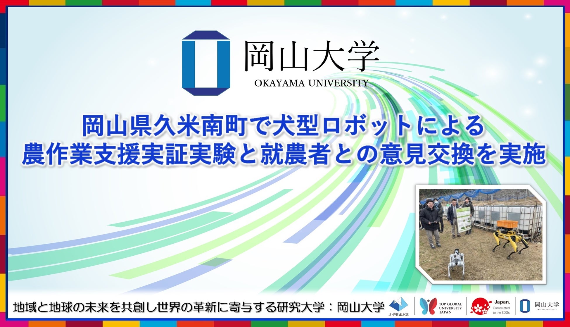 岡山大学は、今後も久米南町をはじめとする地域の農業現場と連携しながら、最先端技術を活用した持続可能な農業の実現を目指し、実証実験を重ねていく予定です。引き続き、地域中核・特色ある研究大学:岡山大学の取り組みにご期待ください。