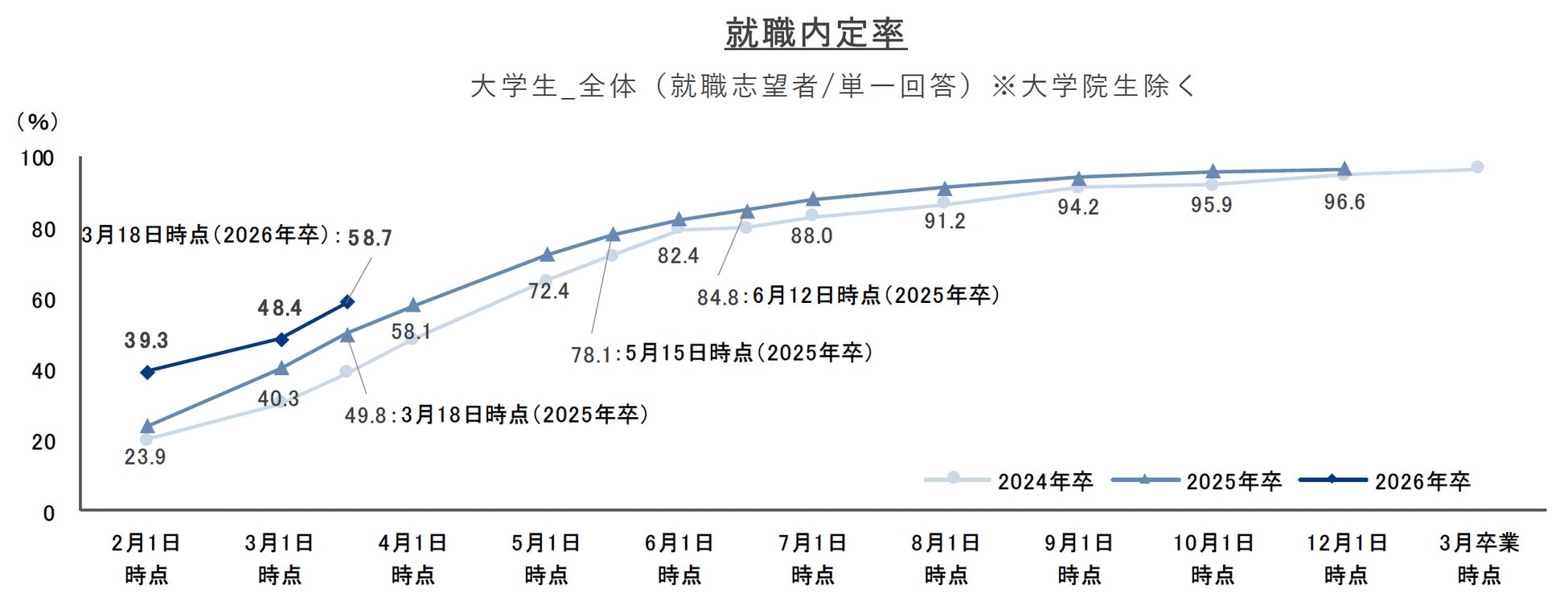 就職プロセス調査(2026年卒)「2025年3月18日時点 内定状況」