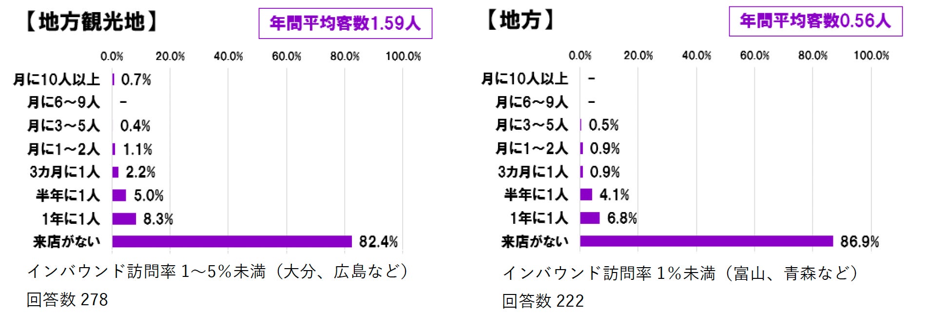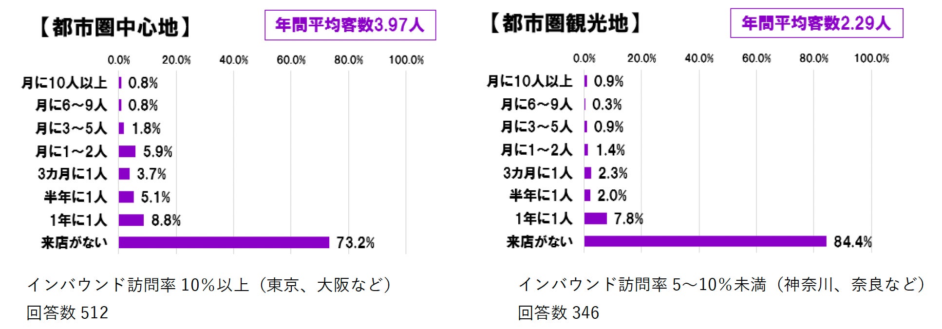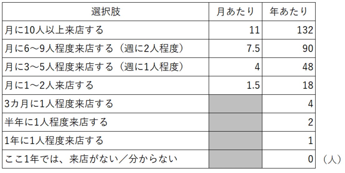 ※年間平均客数は、単一回答の各選択肢を以下の通り「年あたり」の人数として数値化し、その平均値を求めた。