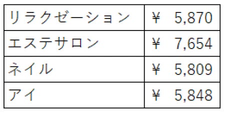 ホットペッパービューティーアカデミー「美容センサス2024年上期」より各ジャンルの加重平均を算出し平均客単価として設定