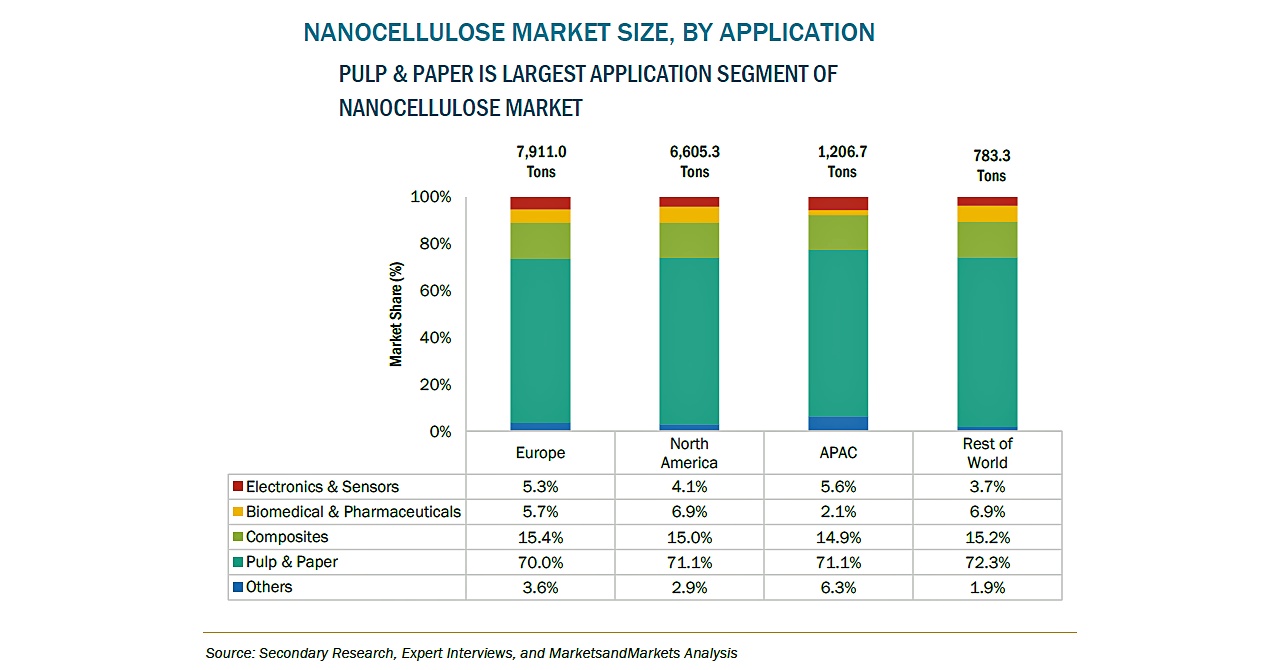 ナノセルロース市場は、その高度な特性により、過去5年間、北米や欧州で大きな注目を集めてきました。これにより、ナノセルロースのアプリケーション開発と商業化のための資金調達が増加しています。米国森林局は、国内でのナノセルロース材料の使用のために研究開発プログラムを開発しました。欧州でも、製品開発プロジェクトが政府や民間企業から資金提供を受けています。