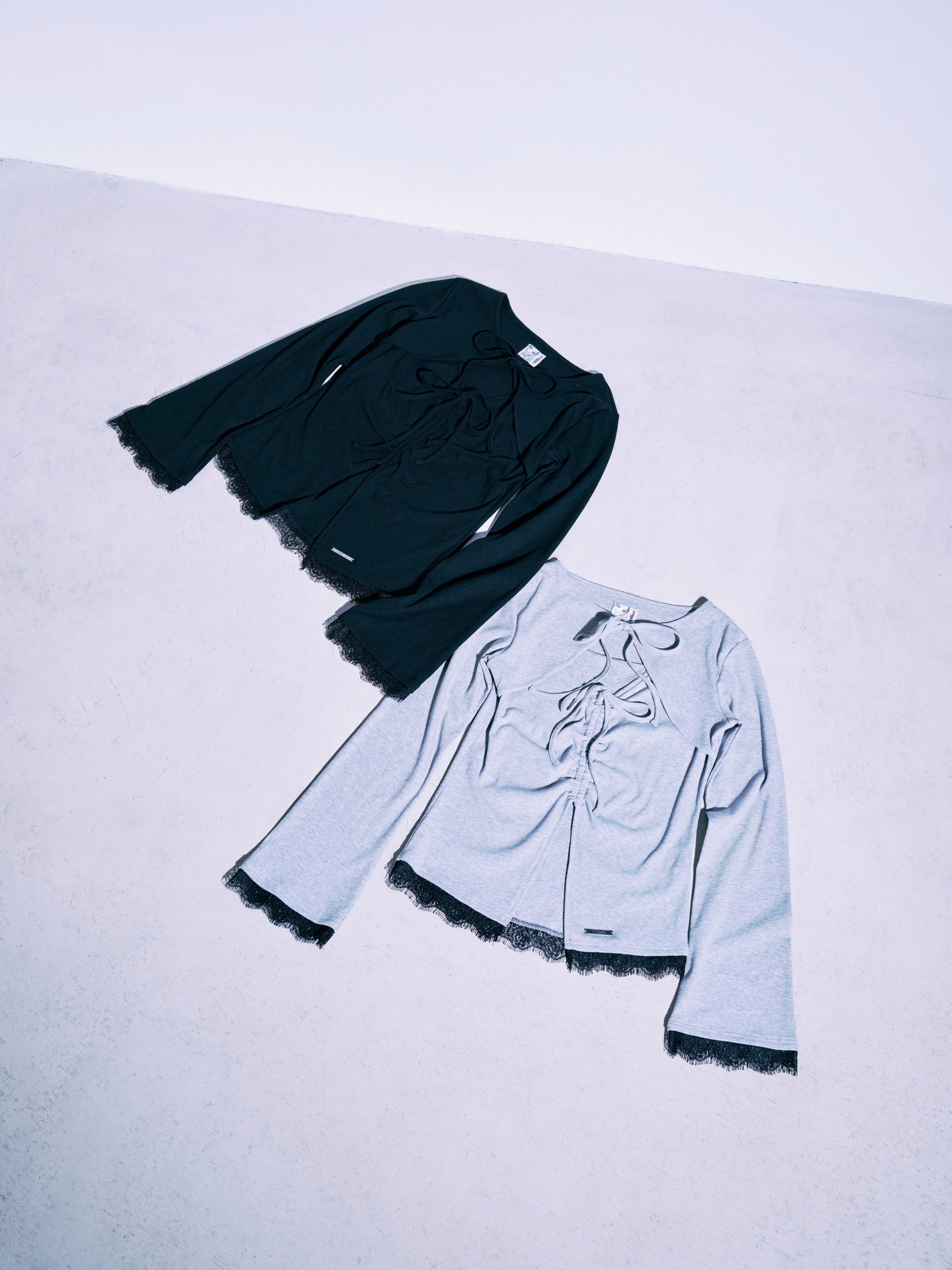 裾と袖にあしらったレースとリボンデザインの甘さを、上品なフレアスリーブで抑えたトップス。NANA×HAREの刻印が入ったオリジナルプレート付き。