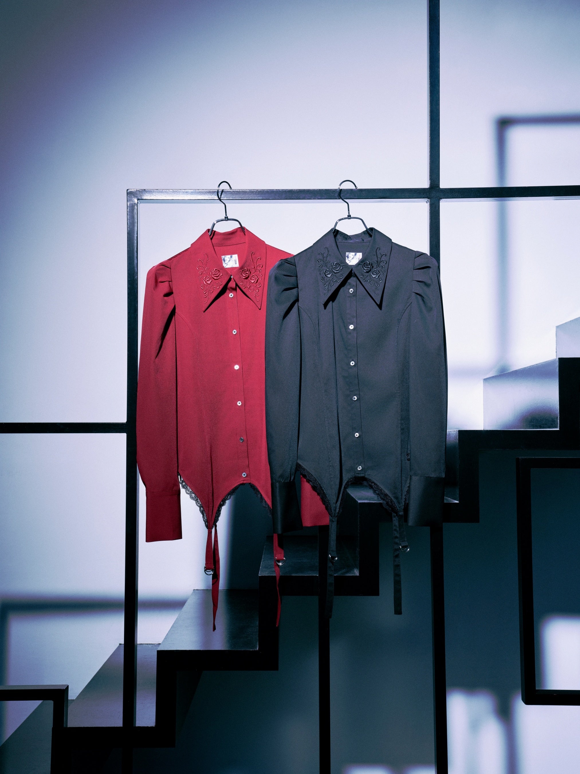 大崎ナナの強気なキャラクターを表現したパワーショルダーと、レースをあしらったランジェリーライクなビスチェデザインがポイントのデザインシャツ。