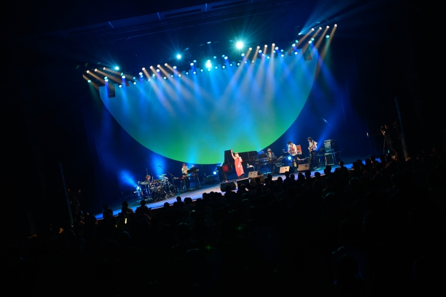 そんな岡本が赤を基調としたドレスに着替えると、コンサートは後半戦へ。《悲しみなんか吹っ飛ばせ!》と軽快に歌うスキマスイッチ・大橋卓弥とのコラボ曲「明日ハレルヤ!」や、『ちびまる子ちゃん』のエンディング曲にもなった「アララの呪文」など、アップテンポなナンバーに会場が大いに湧く。そして、待望の「TOMMOROW」。《涙の数だけ強くなれるよ アスファルトに咲く花のように》と語りかけるように紡いだ歌は、20年の時を経たいまも全く色褪せず、むしろ永遠の名曲として一層輝きを増し、会場に大合唱を巻き起こった。