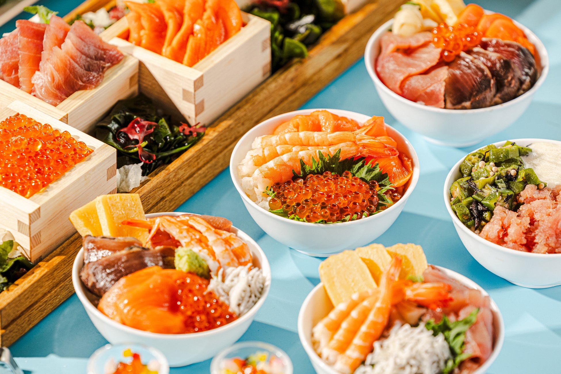 「海の幸 のっけ丼」コーナーでは、いくら、まぐろ、海老、サーモン、かつお、釜揚げシラス、ネギトロ、卵焼き、オクラひじきしそ風味、山芋とろろの全10種の具をご用意。好みの具材を盛り付け自分だけの一杯をお作りいただけます。