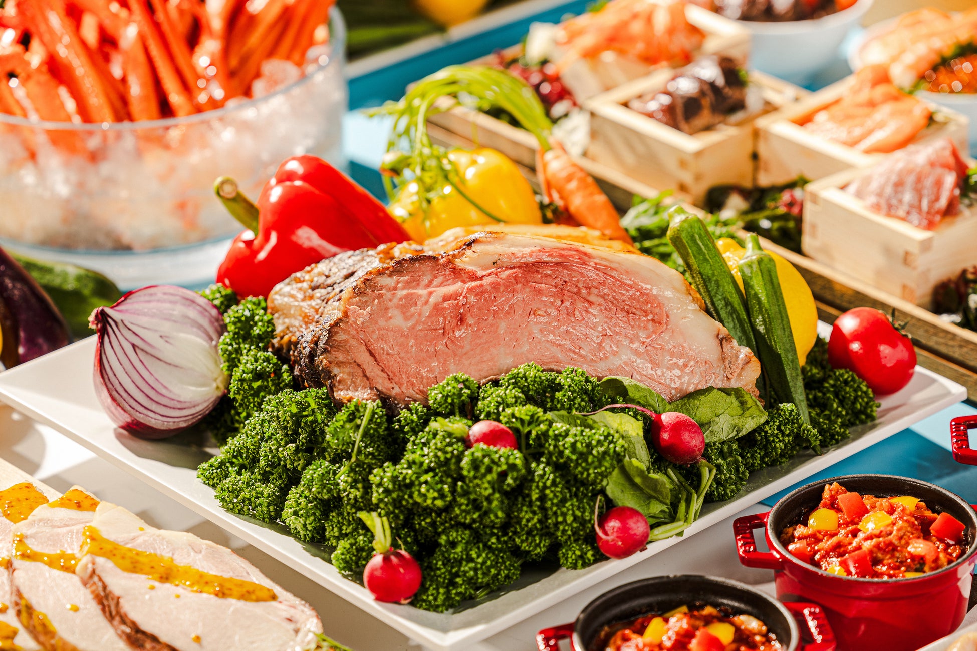注目の逸品は、国産牛ローストビーフとスペイン産ハモンセラーノのカッティングサービス。シェフが目の前で切り分けるローストビーフは、肉の旨みを閉じ込めたジューシーで贅沢な味わい。芳醇な香りと深いコクが魅力のハモンセラーノは、薄くスライスすることで繊細な味わいがより一層際立ちます。目の前で仕上げられるライブ感とともに、切りたての美味しさをご堪能ください。