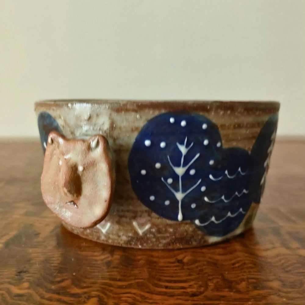 ボディには森の木々を、取っ手にはくまの顔が印象的に。耐熱仕様ですが、サラダやデザートボウルとしても。ほかにも物語に登場する自然は、北海道の動植物や自然がモチーフの作品が多数。