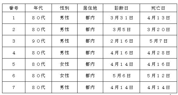 都内で新型コロナウイルスに感染した方が死亡されましたのでお知らせします。
