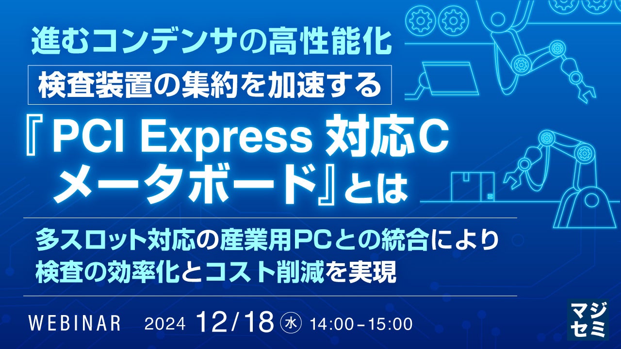 マジセミ株式会社は「進むコンデンサの高性能化:検査装置の集約を加速する『PCI Express対応Cメータボード』とは」というテーマのウェビナーを開催します。