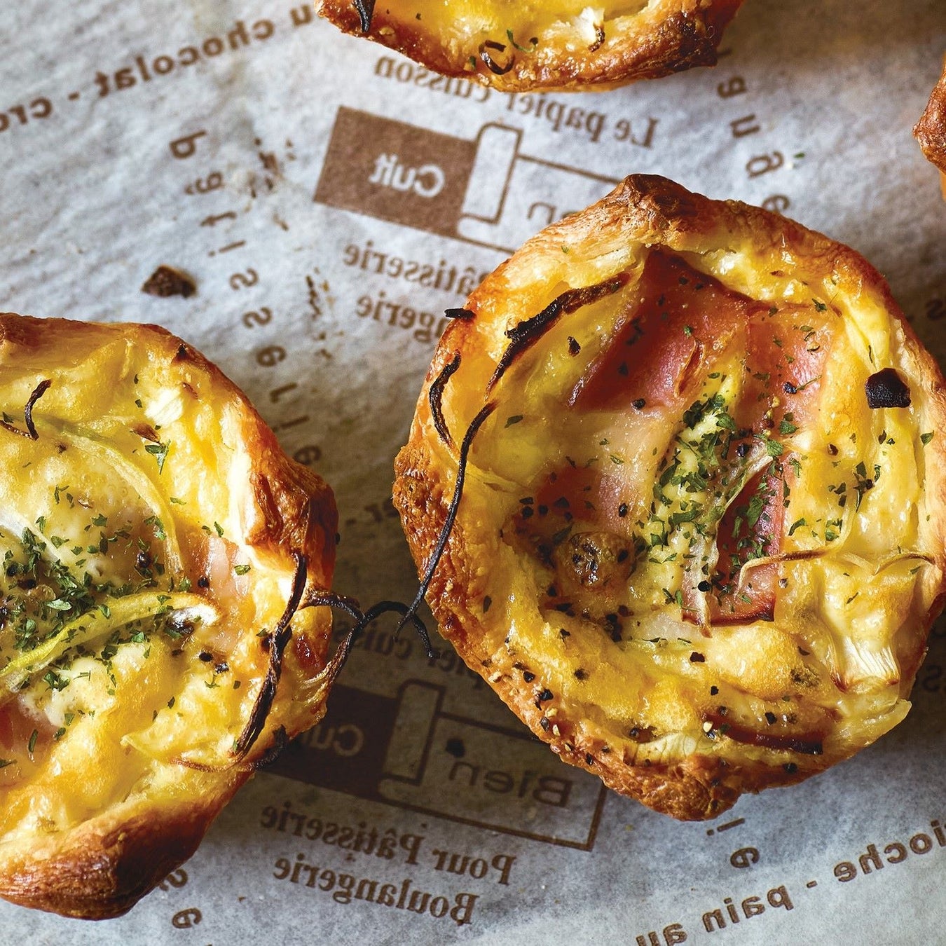 新玉ねぎ、ベーコン、チーズを合わせて焼き上げたキッシュ。