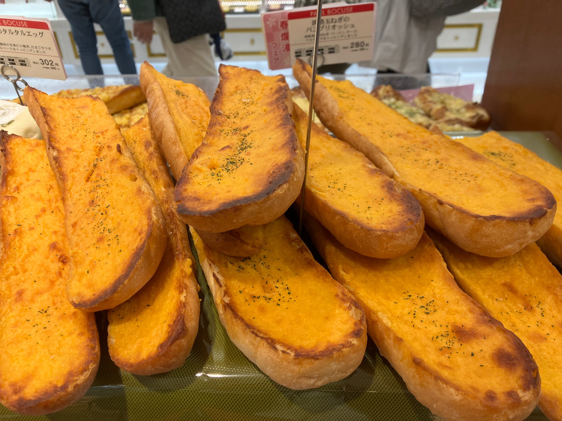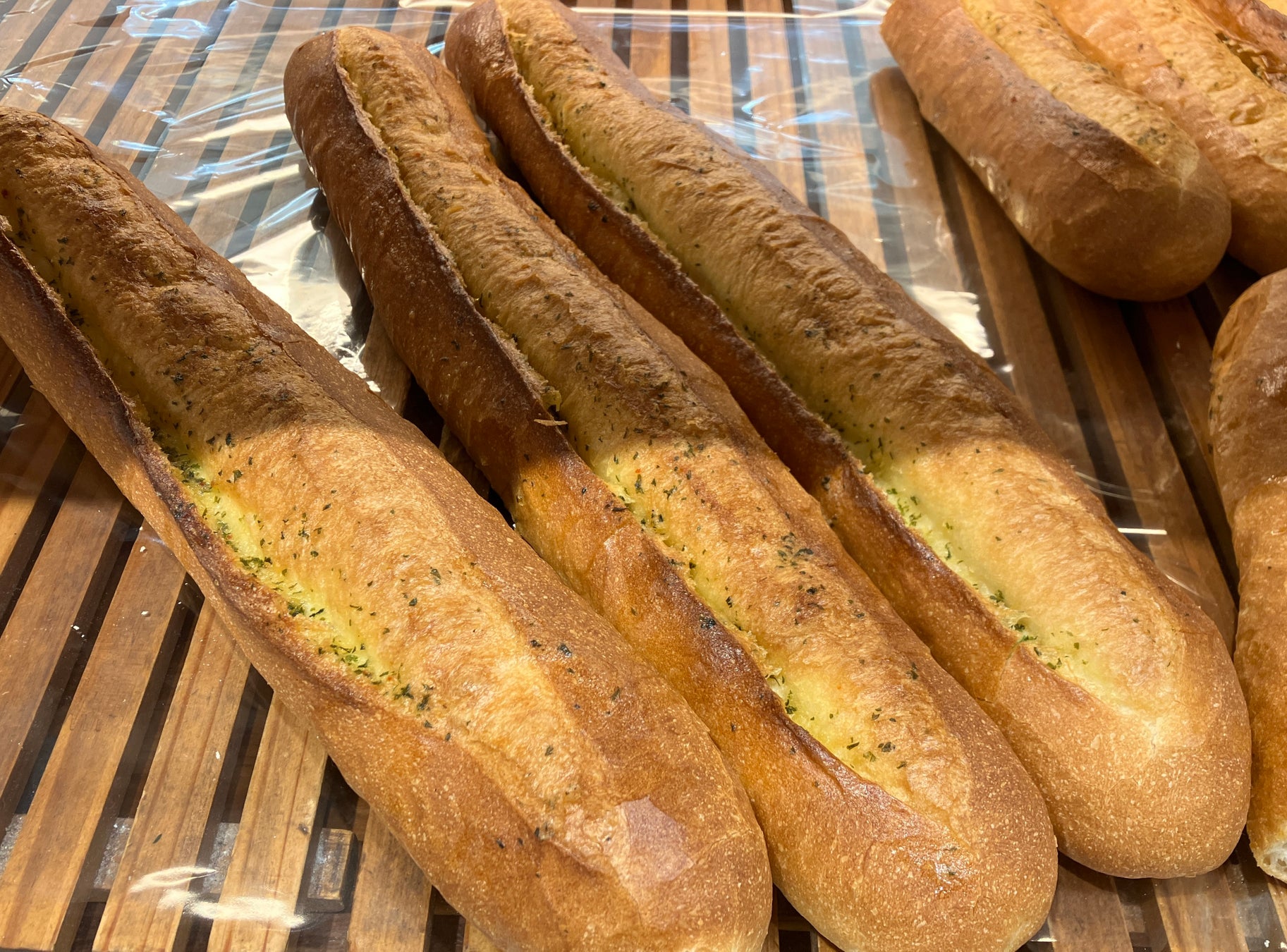 フランスパンにうにバター風味のフィリングを塗って焼き上げました。