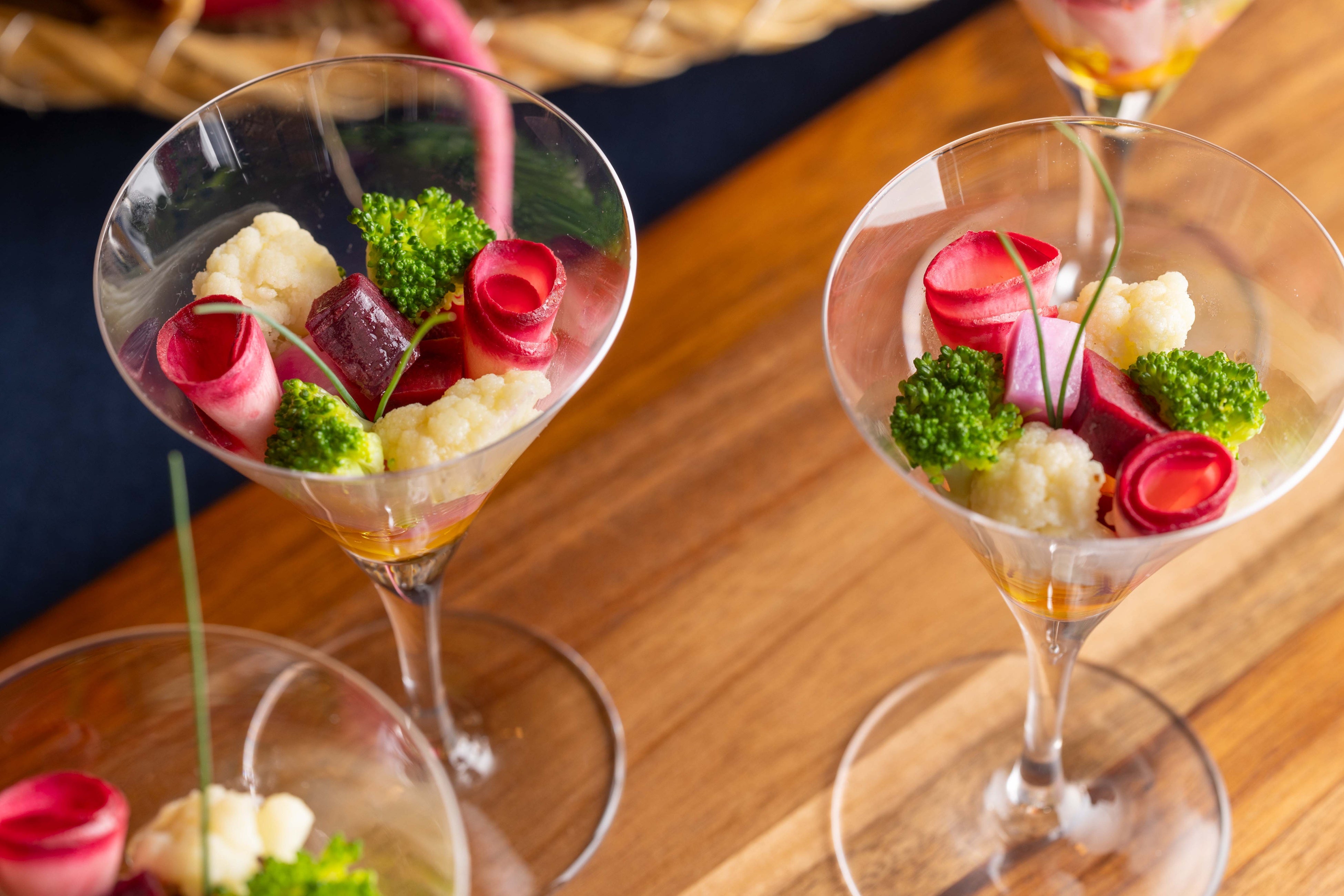 「相模湾で獲れたシーフードのブイヤベース」は、日本三大深湾の1つで、海産物の宝庫でもある相模湾から届いた魚介のダシの味わいを、熱々のスープでお楽しみいただけます。寒い日に心も体も温まる一品です。また、「かねじょうみそでマリネして焼き上げたやまゆりポーク」は、甘みと旨味が特長の「やまゆりポーク」を、香り高い味噌の風味に仕上げました。とろけるような味わいをご堪能いただけます。この他にも、みかんの甘味とチーズの塩味がたまらない「小田原産みかんとクリームチーズのピッツァ」や、カラフルな彩りが美しい「横浜都筑と三浦で収穫した色々野菜のマリネ」もご用意いたします。