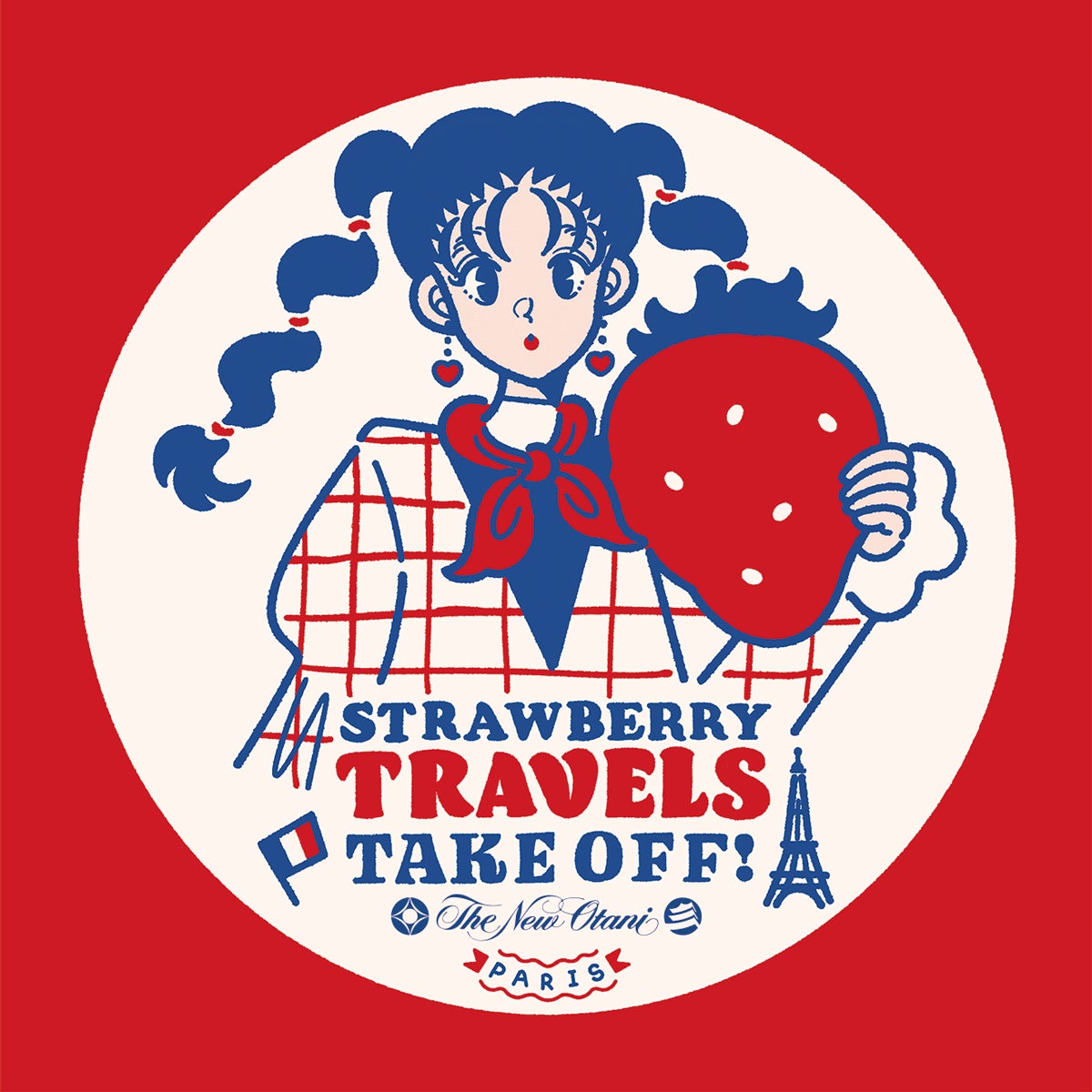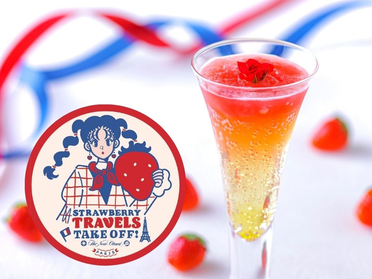 ホテルニューオータニ大阪では、2025年1月4日(土)~3月31日(月)で開催するいちごスイーツビュッフェ「スーパースイーツビュッフェ2025 ~ホテルでいちご狩り~ STRAWBERRY TRAVELS “TAKE OFF”!」の1月限定オプションドリンクとして、大阪出身のイラストレーター・サンレモとのコラボコースター付ノンアルコールカクテル『ストロベリーシャンゼリゼ』を販売します。
