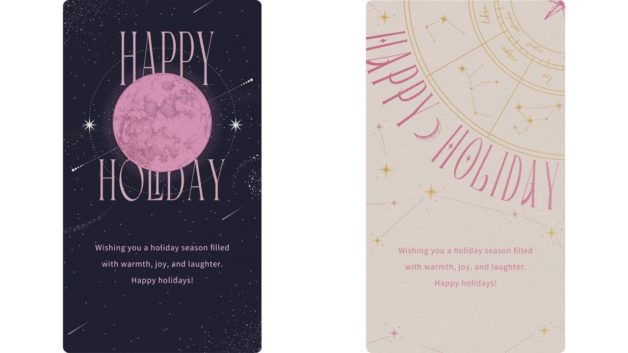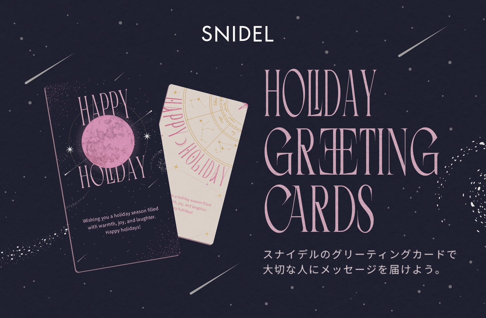 ホリデーのロマンティックでドリーミーな夜空を表現した2種のデザインをご用意!身近な友人や大切なパートナー、遠くに住む家族など、大切な人に気軽にメッセージを届けられるサービスを提供