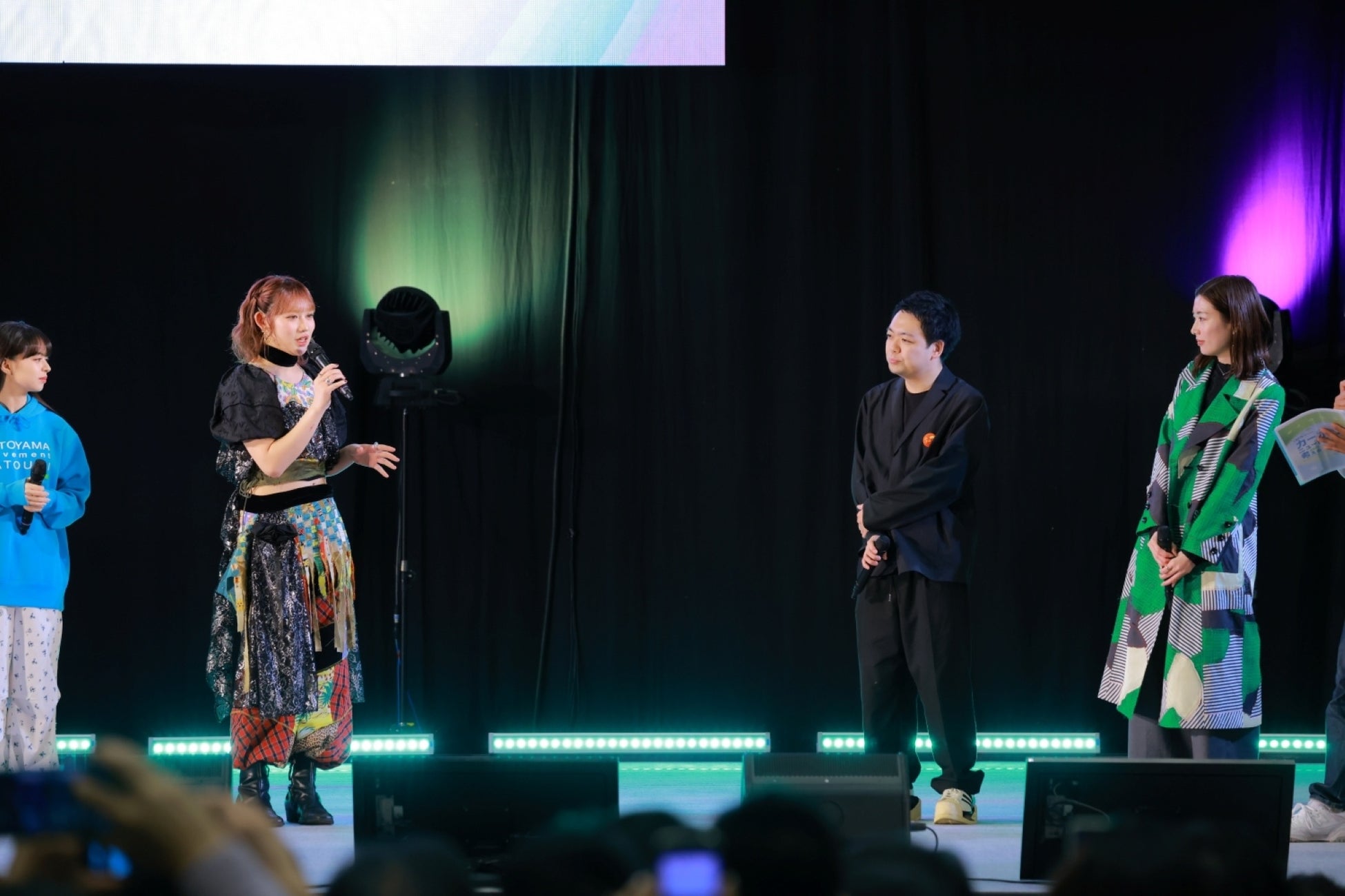 「カーボンニュートラルを考える 2025 by SATOYAMA & SATOUMI movement」は、大手芸能事務所、アップフロントグループ主催の「カーボンニュートラルを考える」をテーマに環境問題や地方創生、地域活性化などへの関心を広めるために毎年さまざまな企画を展開したイベントです。今回、環境省の「デコ活」ブースが出展され、その中で2024年度「デコ活」推進事業である「衣類循環アップサイクルプロジェクト“roop”」をご紹介いただきました。その企画として、モデル・タレントの佐々木 莉佳子さんの思い入れのある衣類を、「衣類循環アップサイクルプロジェクト“roop”」プロジェクトとして大阪文化服装学院学生達の手によってアップサイクル衣装制作いただきました。