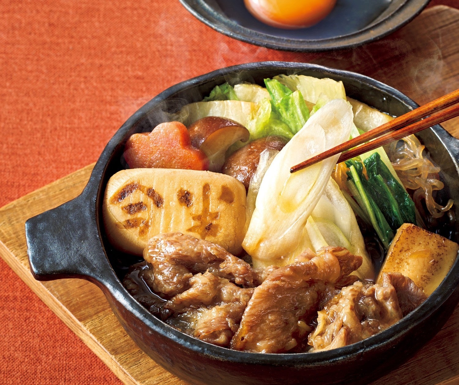 創業130年の〈浅草今半〉が誇る看板商品「すき焼」を、個食鍋で手軽に楽しめる一品に仕上げました。厳選した黒毛和牛の柔らかな肉に、自慢の割下が絶妙に絡み、噛むほどに広がる深い旨みが味わえます。伝統野菜の千住ねぎやお麩の風味も加わり、電子レンジで手軽に老舗の味を堪能できる贅沢なすき焼です。