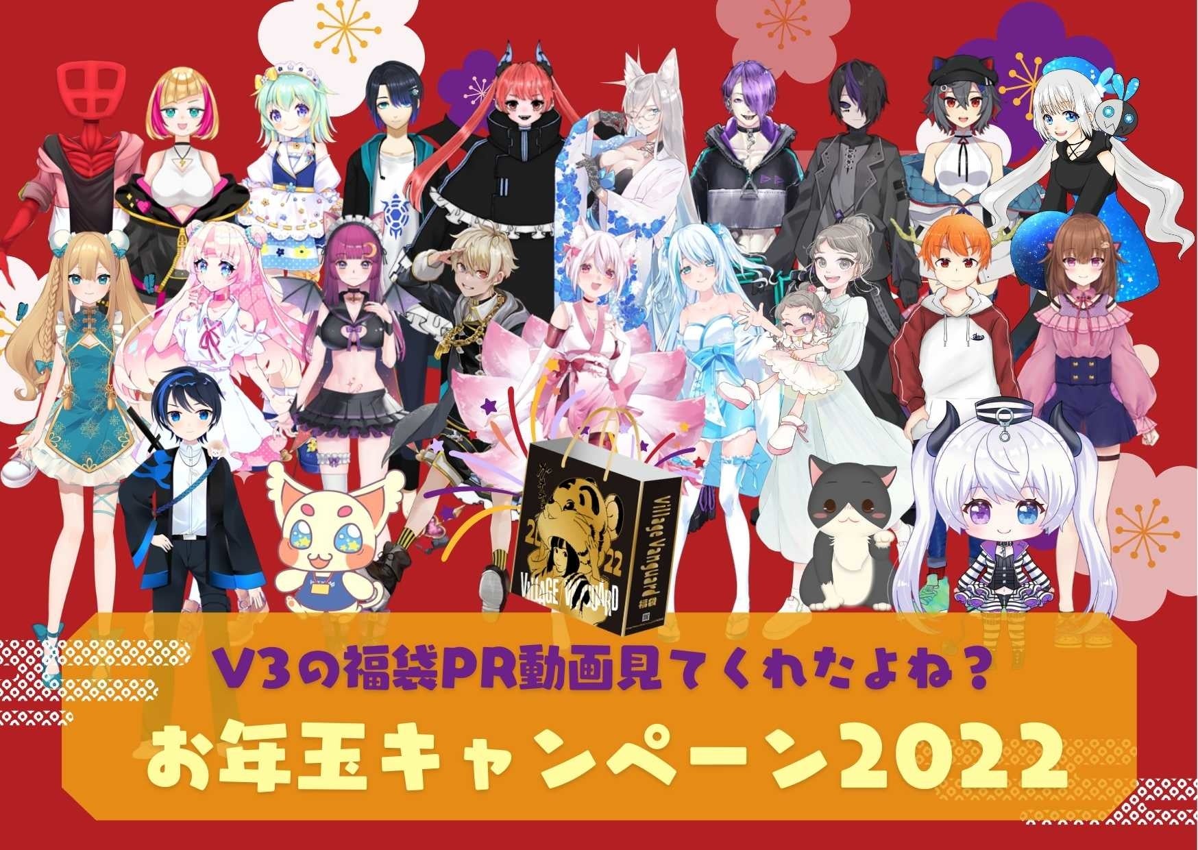 ヴィレッジヴァンガード所属ライバー集団〈V3〉が、2022年ヴィレッジヴァンガード福袋全7種を紹介する動画を公開しました。今回は、有志メンバー23人を3チームに分けて、3種類の福袋PR動画を制作。動画は福袋特設サイトやキャンペーンページからご覧いただけるのはもちろん、全国のヴィレッジヴァンガード福袋売り場で放映いたします。今年のお正月のヴィレッジヴァンガード店頭は、V3が盛り上げます!