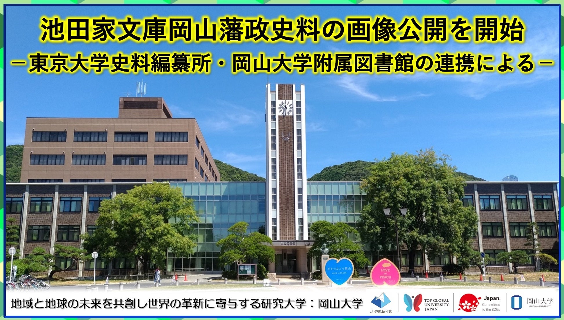 東京大学史料編纂所は、岡山大学附属図書館との連携により、同館所蔵「池田家文庫」の岡山藩政史料の画像約1万コマのウェブ公開を同所「Hi-CAT Plus」データベースより開始した。2025年度中に4千コマの追加も予定している。