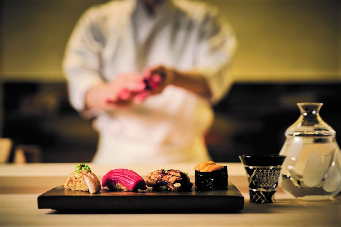 彩鮮やかな「アートピース」や煌めく「宝石」になぞらえた五感で楽しむ鮨の世界。