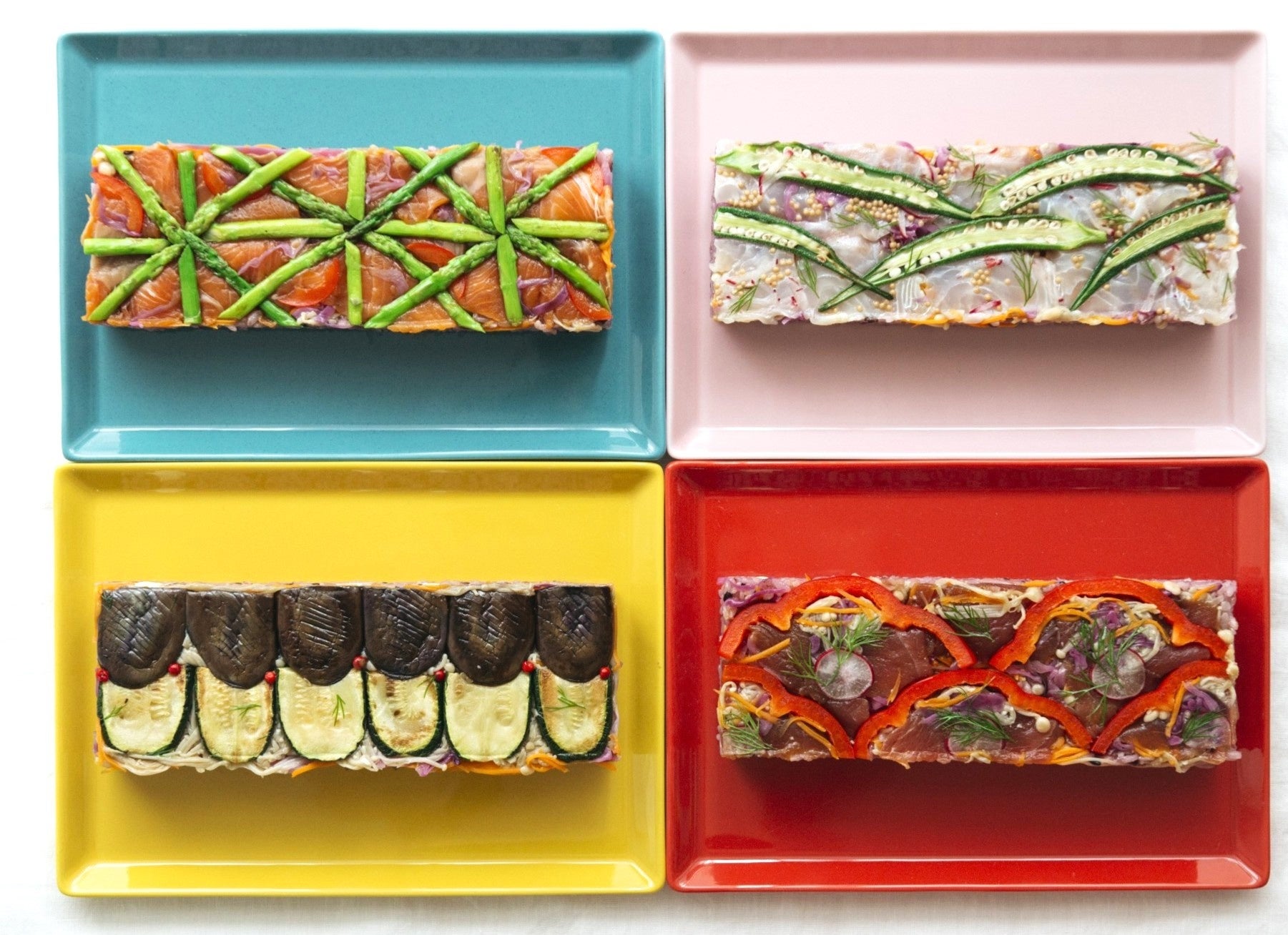「テキスタイルデザイン」と食を融合させたグラフィカルな押し寿司を展開する「fuu fuu fuu(フーフーフー)」。社名の3つの「f」は「feel/感覚」「fiber/繊維」「fuse/融合」を表し、食材を繊維のように捉えて季節や味わい、食感を織り重ねます。見て驚き、食べて喜べる「食べられるアートピース」を目指し、視覚性と多様な味覚の両立を追求しています。