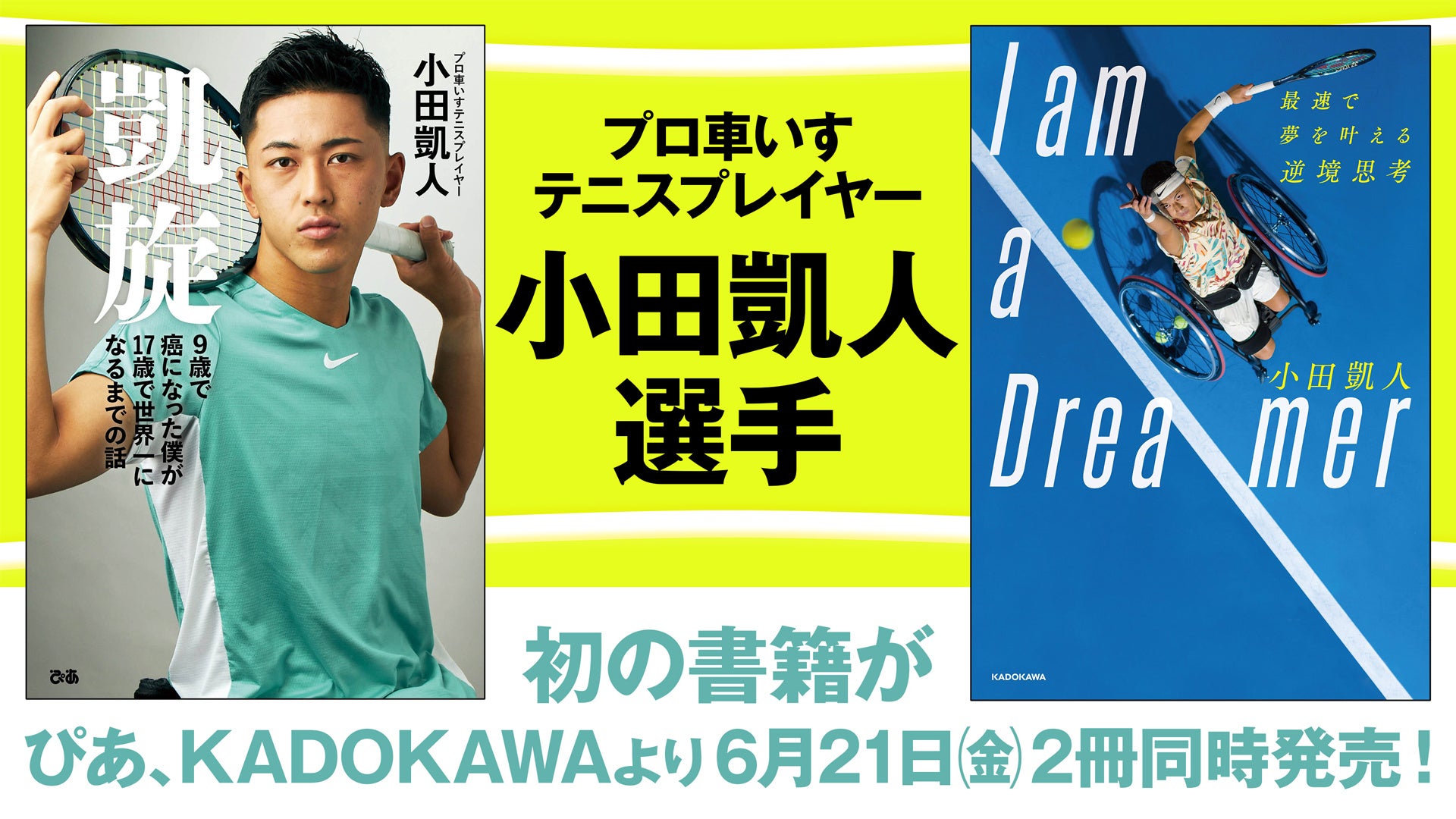 史上最年少記録を次々に更新する、注目のプロ車いすテニスプレイヤー・小田凱人選手。初書籍がぴあとKADOKAWAから2冊同時刊行が決定!