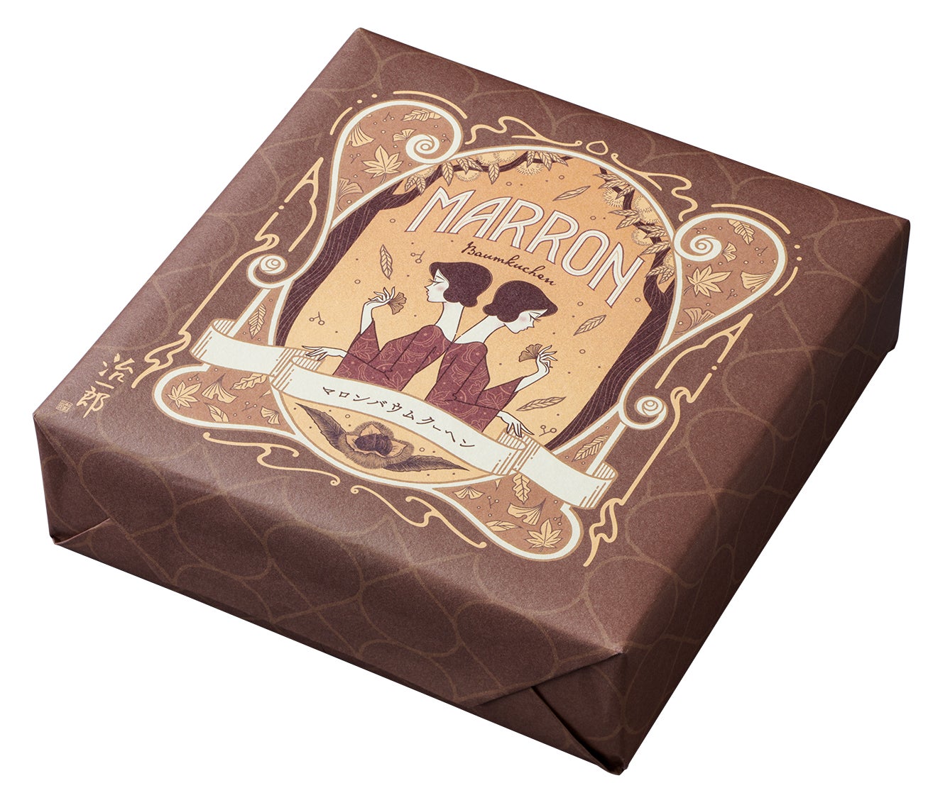 この秋の「治一郎」の新作のテーマは、秋ならではの「栗」。イタリア産マロンペーストを生地に練りこんでしっとりと焼き上げた「マロンバウムクーヘン」、マロンペーストと砕いた和栗をたっぷりと混ぜ合わせ、マロンチョコレートでコーティングした「マロンケーキ」の2商品がリリースされます。
