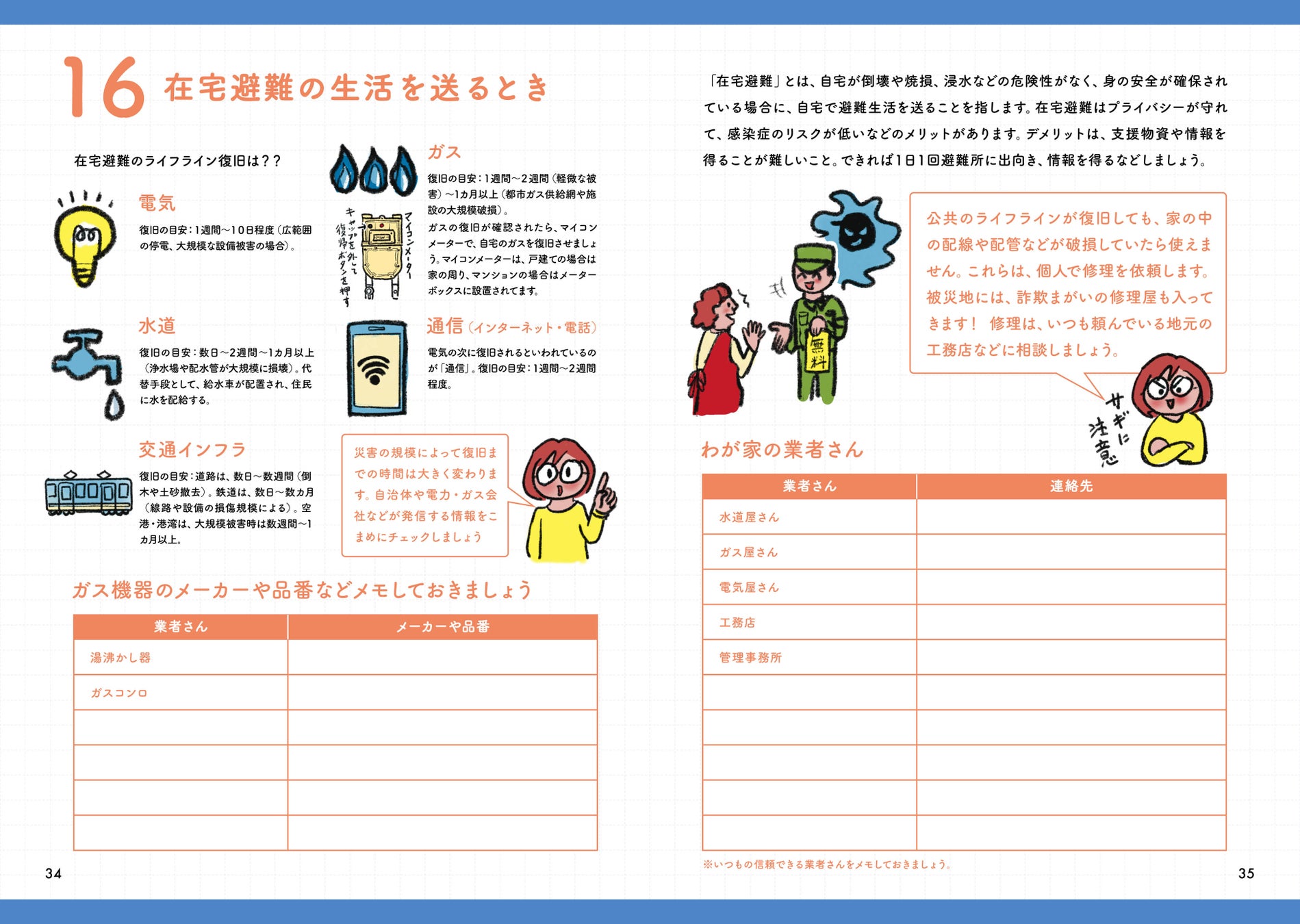 ときどき、行政や自治体など、さまざまなところからお声がけいただき講演会をおこなっているのですが、そのつど、書き込めるタイプのテキストを作って、みなさんにお渡ししていました。参加いただいたみなさん、それぞれのご家庭で、家族構成も違えば、住まいのタイプも違ってきます。みなさんが、それぞれご自身やご自宅のことを、覚え書きのように記入し、家族でシェアすることで、各ご家庭オリジナルのマニュアルができないものか、そこにもっともっと役に立つ情報を織り込んで、みなさんのご家庭で、災害に備えた、「防災のお守り」のようなものを作れないかと考えたのがきっかけです。