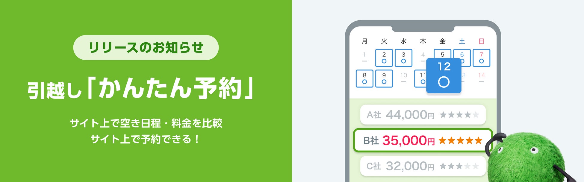~引越し日の空き状況と料金を可視化、予約までをワンストップで完結~