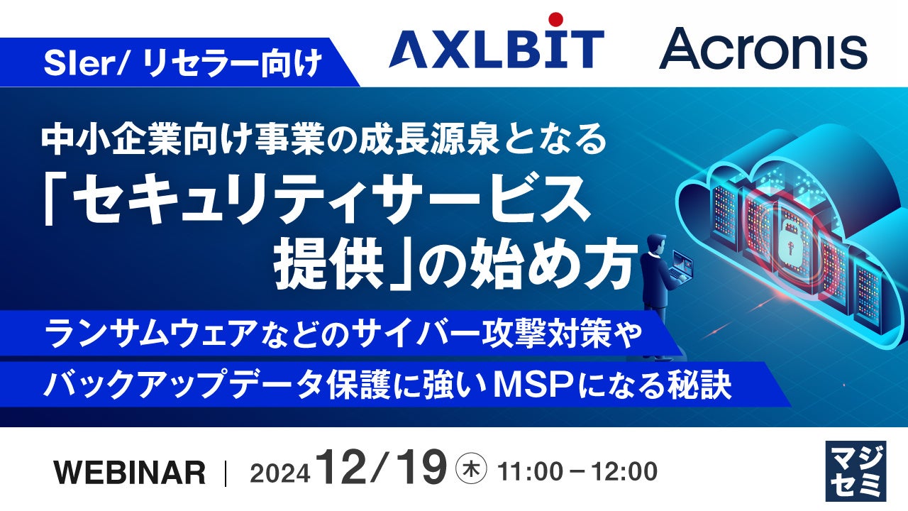 マジセミ株式会社は「【SIer/リセラー向け】中小企業向け事業の成長源泉となる「セキュリティサービス提供」の始め方」というテーマのウェビナーを開催します。