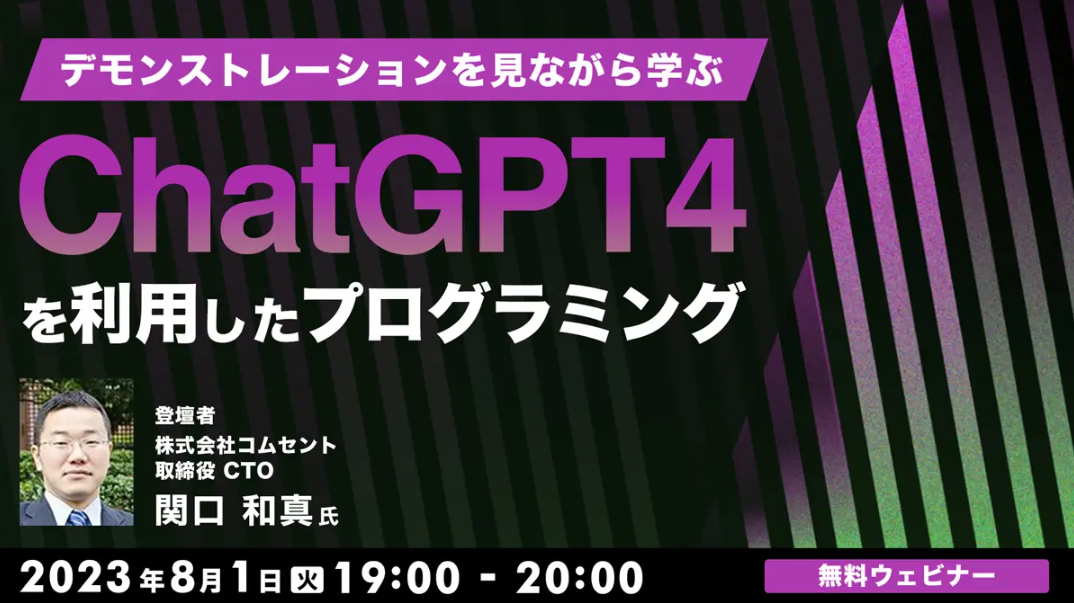 ChatGPTのプログラミングへの活用術をデモンストレーション!8/1(火)無料セミナー「ChatGPT4を利用したプログラミング」